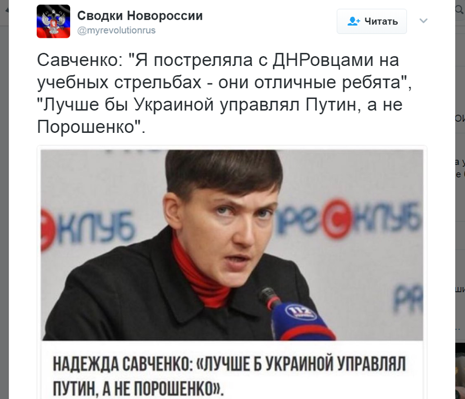 Интересно как у вас. Сначала - хирои сала и кастрюли. Сидела себе Савченко в российской тюрьме и никого не трогала. Потом - враг народа, и трех лет не прошло. Неблагодарный вы электорат.
