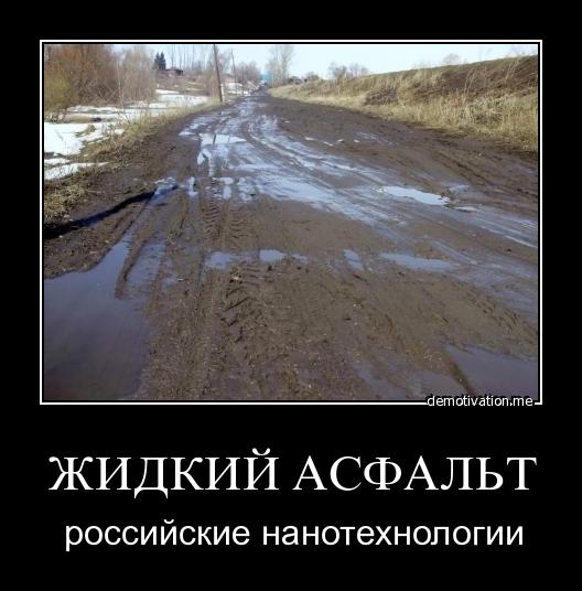 В России всегда будут плохие дороги)) у нас как бы климат. Вечно будут про дороги анекдоты травить)) снег стаял- дорога как после бомбежки, чтобы еще понимали все)) двойной, а то и тройной расход на дороги, а особенный толк все равно не видно. Уже вчера видела - ямы заливают жидким асфальтом, ездить невозможно, как дорога вскрылась. Дожди с морозом, ничего не сделаешь))