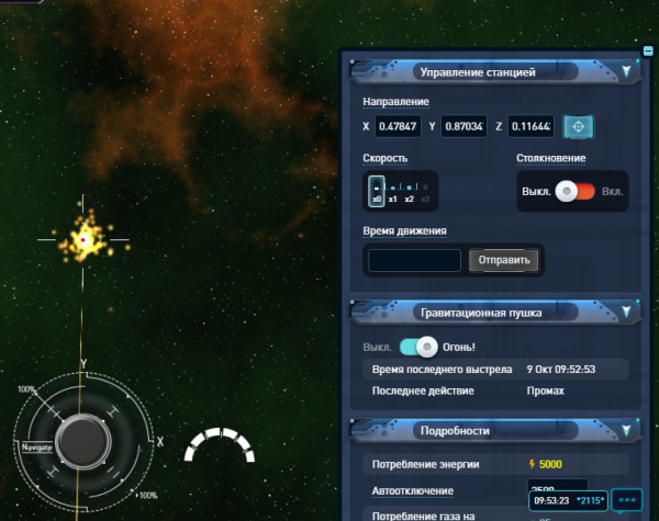 проблема с пушкой и с наведением на комету решилась. Отлетел немного в локалке. Хотя никаких препятствий не было