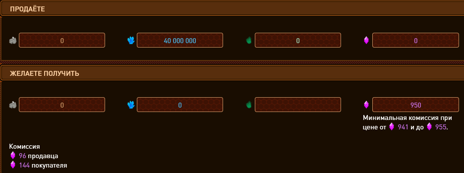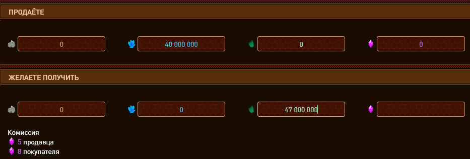 В присутствии биржи какой смысл говорить о «балансе вне биржи»? Я понимаю, что глядя в листинги Дендрариума трудно в это поверить, но вы можете продавать ресурсы за другие ресурсы, не только за КХ. Комиссии при обмене без участия КХ, кстати, мизерные: