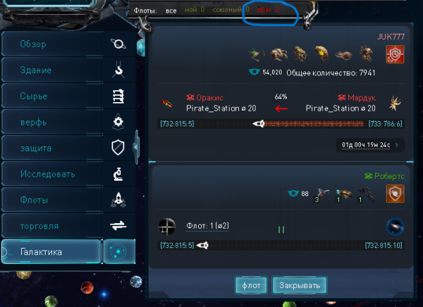 Описание: При атаке на ОПС в карте галактики отображается дублирование флотов. Во вкладке вражеские флоты один