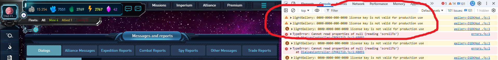 While in game, I noticed a console warning indicating that LightGallery is being used in production without a valid license key.