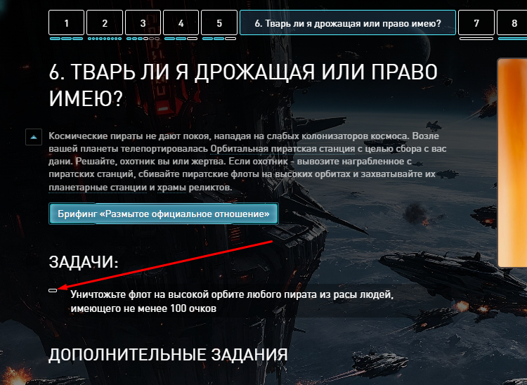 Уничтожение флота пирата расы людей на 356 очков засчитан по миссии 5.