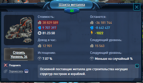 6 Фев 23:25:21 были доставлены ресурсы на планету 299:545:5 и запущен процесс строительства шахты 33 уровня, после окончания стройки 8 Фев 07:00:00 истощение шахты не сбросилось.
