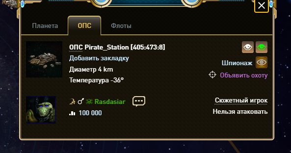 ОПС будет прилетать по накоплению агрессии пирата 100