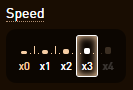 When the speed is set for a Station or Dunkleosteus to move in Local Coordinates the relevant setting (e.g. x1, x2 etc.) is highlighted (as below)