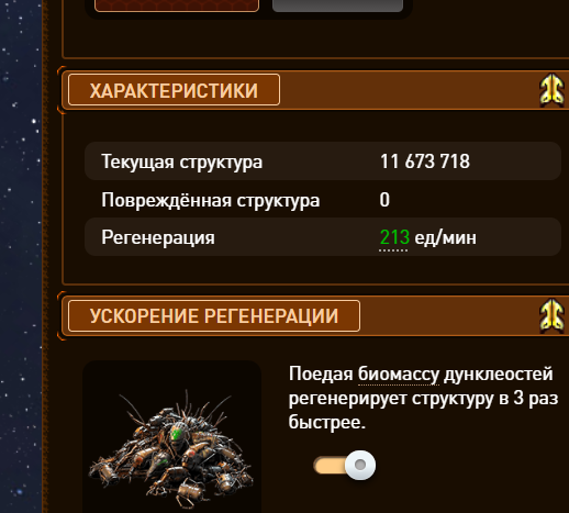 Ускорение регенерации включилось, но повышение структуры не происходит.