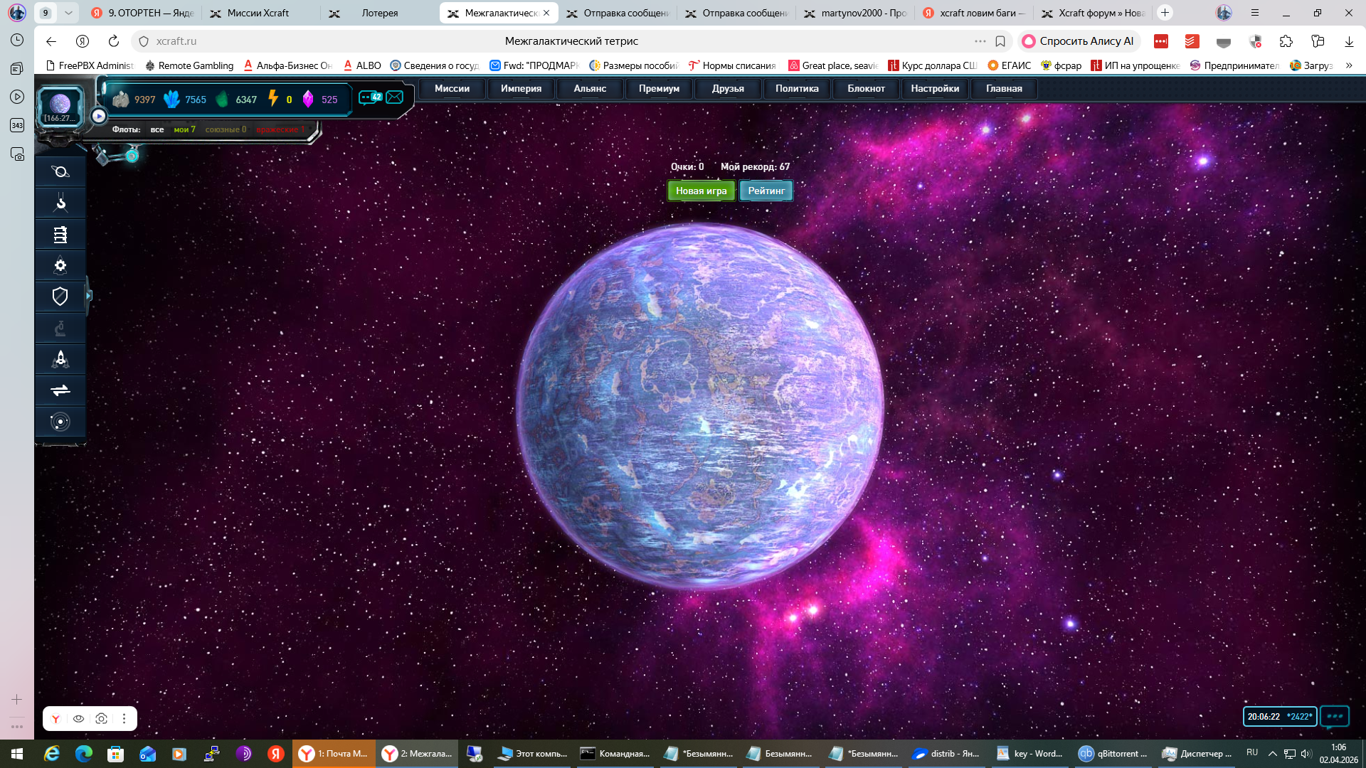 Поиграл в тетрис переключился на планету, осталась надпись.