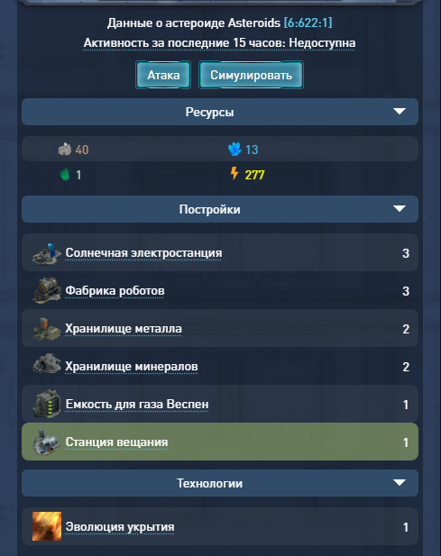В шпионских отчетах незанятых астероидов появился раздел "Техноло, В отчетах незанятых астероидов теперь есть теха "Эволюция укрытия