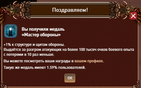 TUK-TUK получил: 554 312 опыта и медаль: +1% к щитам и структуре обороны